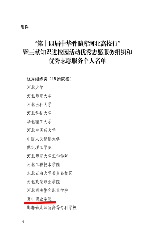 为深入贯彻落实习近平总书记关于红十字事业、教育工作和青年成长成才重要指示精神,引导广大学生树立正确的世界观、人生观、价值观,我院建筑艺术系成立河北省红十字会捐献造血干细胞志愿服务大队——冀中职业学院志愿服务分队,成功申请了由河北省红十字会、河北省教育厅等联合组织的“第十四届中华骨髓库河北高校行”暨三献知识进校园活动。