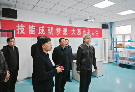 座谈会后,我院调研组实地走访校园,先后参观国家级高技能人才培养基地、高职部人工智能训练基地、实训车间、教学楼、工业机器人及汽修实训间,并到定州高新区技师学院现代服务系实习实训基地观摩学习。