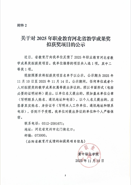 附件 2025年职业教育河北省教学成果奖拟获奖项目名单.docx