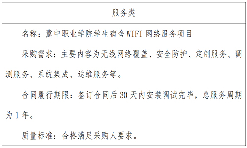 二、项目名称:冀中职业学院学生宿舍WIFI网络服务项目