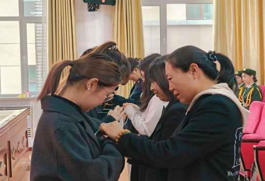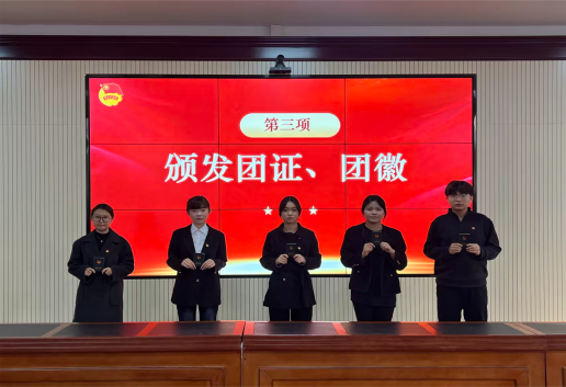 与会领导、老师为新团员代表颁发团员证并佩戴团徽。闪闪发光的团徽别在胸前,不仅是荣誉的象征,更是责任与担当的传递,新团员们的脸上洋溢着自豪与坚定。