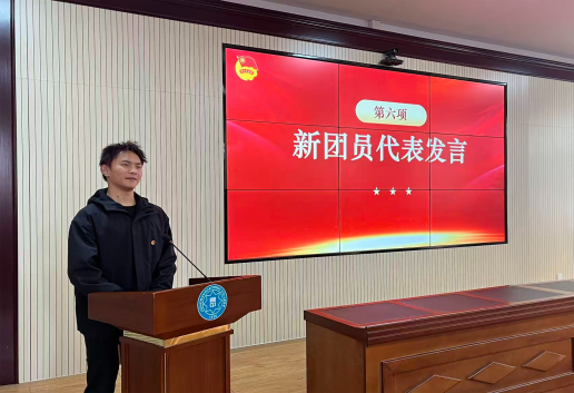 信息工程系章伟同学作为新团员代表发言时表示,能够加入共青团是一份光荣,更是一份沉甸甸责任。他带领大家郑重承诺,将以此次入团为新起点,以团员的标准严格要求自己,勤奋钻研专业知识,练就过硬本领,用实际行动践行入团誓言,不辜负团组织的信任与培养。